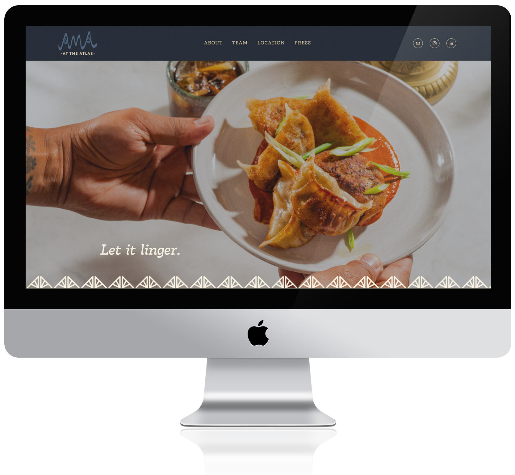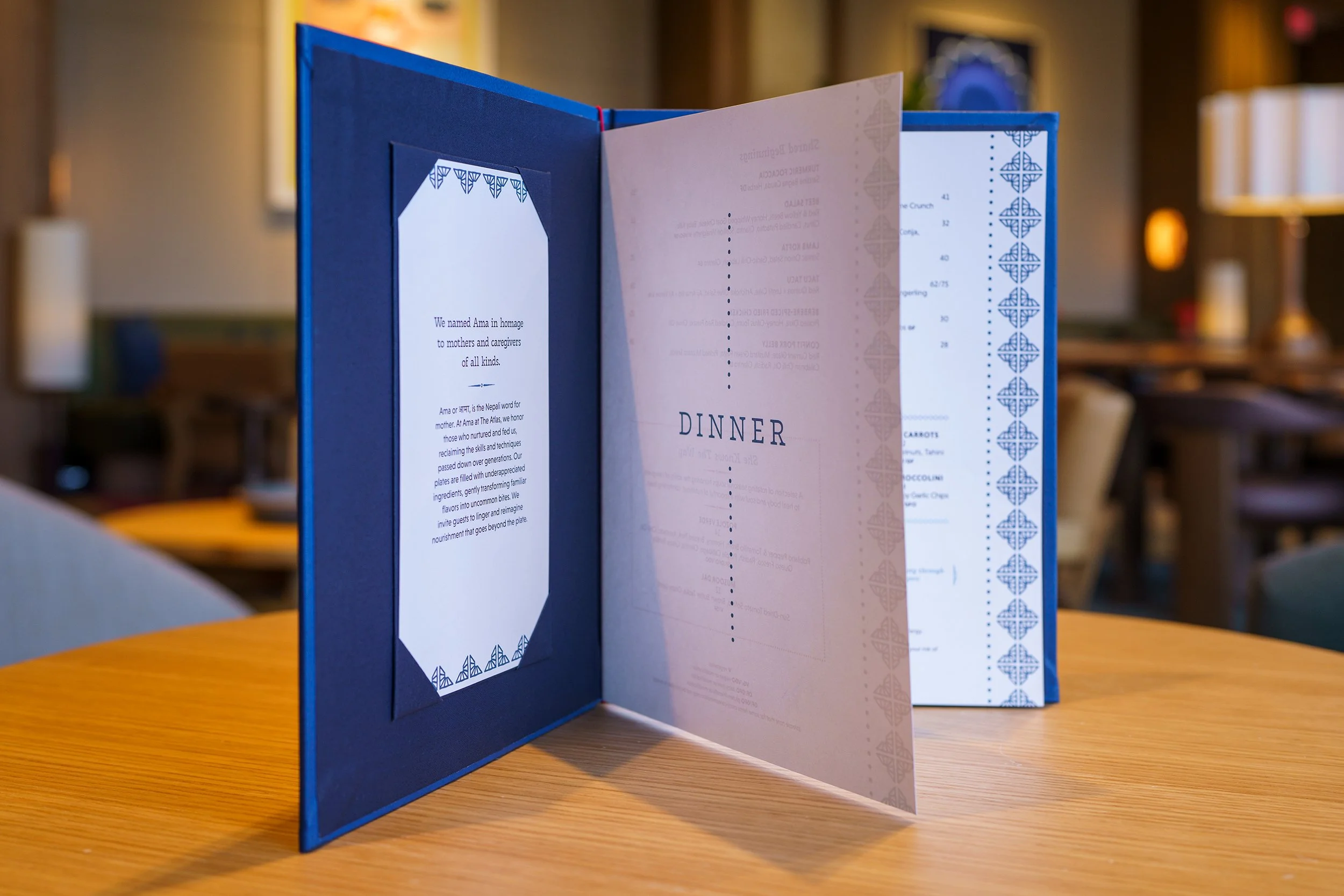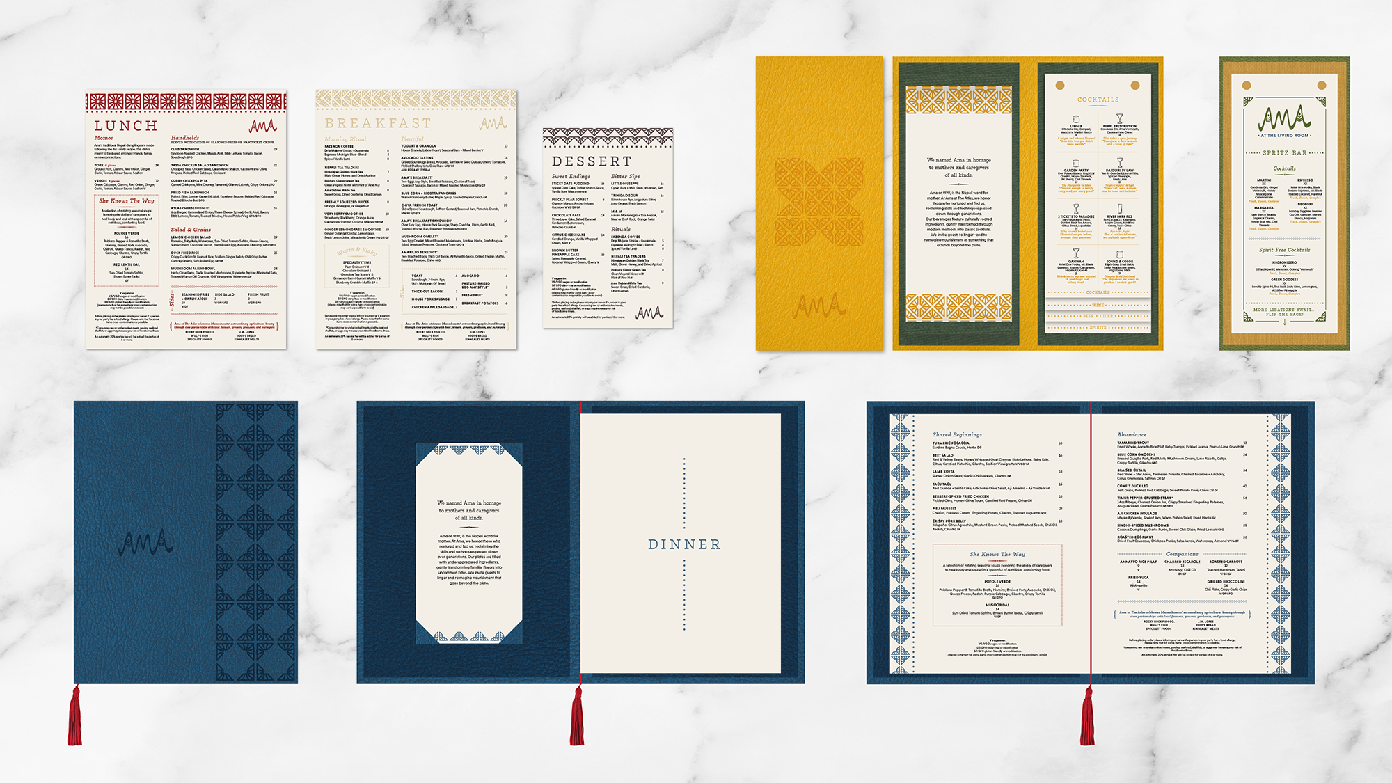 As part of this project, Graffito ID created a full suite of branded collateral, including matchbooks, stationery, food liners, coasters, menus, and even scarfs and bandanas as part of the staff uniform. We also designed and developed the Ama website, bringing the identity online through a clean, modern, and intuitive digital experience for restaurant guests.
